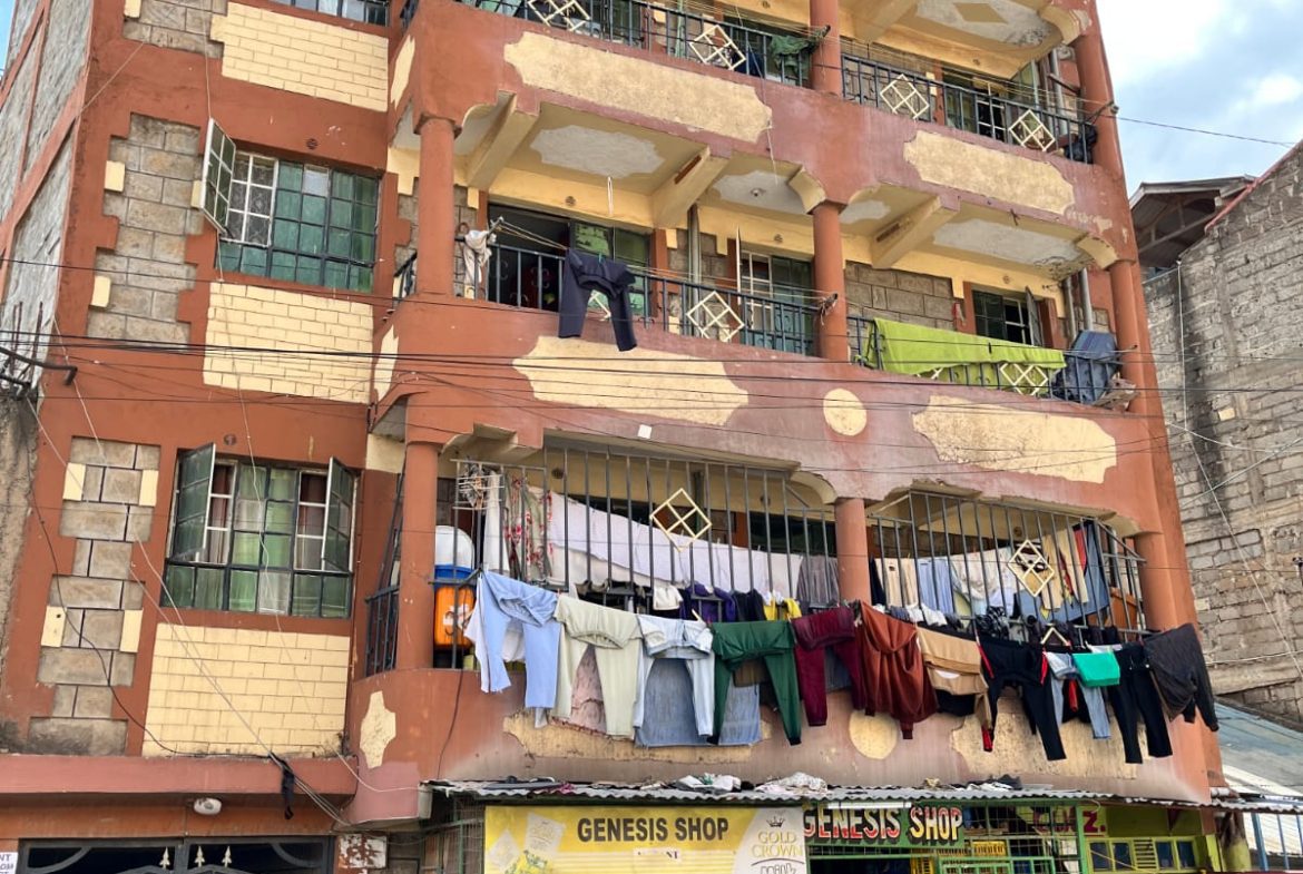 Komarock, along Kayole Spine Road, near Shekinah Family Church.